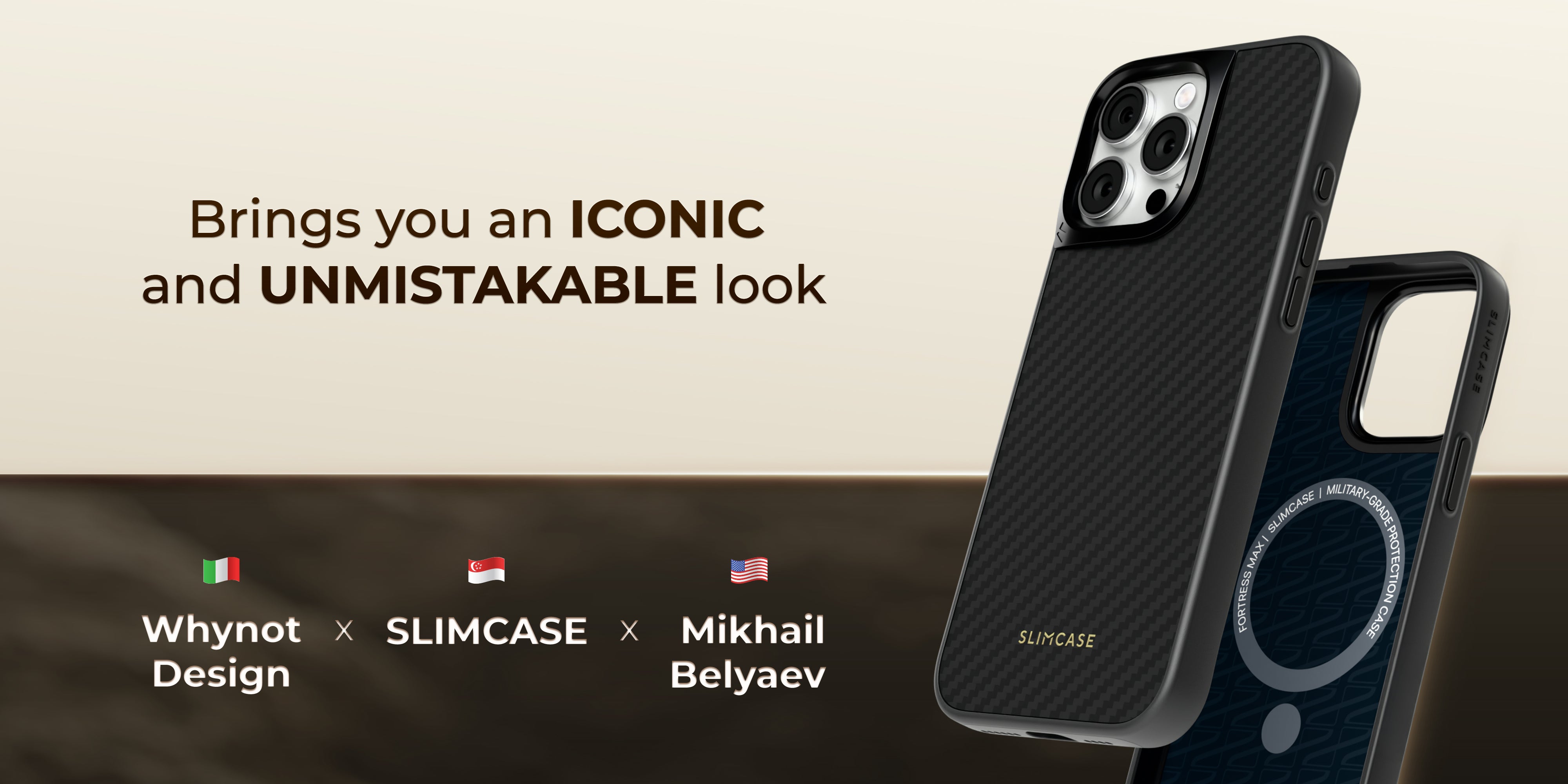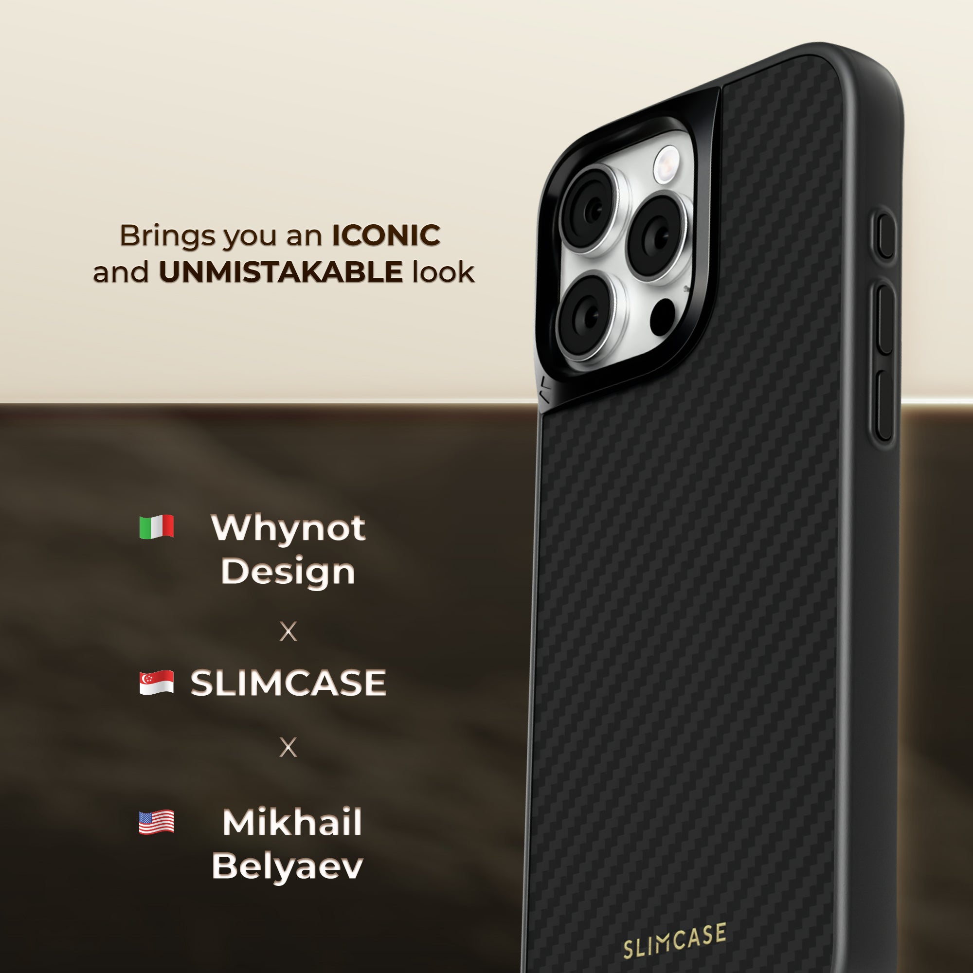 Created with Whynot Design and Mikhail Belyaev, Slimcase Rex brings you an iconic, unmistakable look. The Dark Metallic finish and subtle patterns deliver a style that is modern, refined, and built to stand out.
